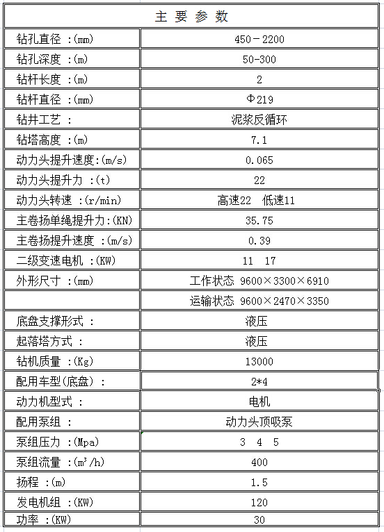 ●此機型是我公司設計制造的一種機械動(dòng)力頭帶泵鉆進(jìn)式反循環(huán)鉆機。本鉆機的特點(diǎn)是動(dòng)力頭機型,給進(jìn)行程長(cháng),加接鉆桿方便,無(wú)需加接主動(dòng)鉆桿。動(dòng)力頭帶泵頂吸反循環(huán)泥漿鉆進(jìn),有利于提高鉆進(jìn)效率,作業(yè)口徑大、效率高、能力強、施工成本低、技術(shù)成熟、性能可靠、操作簡(jiǎn)單、使用和維護方便、制作成本低,特別適用于土層、砂層、卵砂層、軟巖石層的水井和基樁。動(dòng)力頭有兩種轉速,可用于不同地層的鉆進(jìn)。鉆桿結構形式新穎,提引、擰卸工具獨特,連接、拆卸鉆桿方便、快捷。產(chǎn)品有履帶底盤(pán)、汽車(chē)底兩種裝配方式,鉆機移位、就位方便液壓起落鉆塔,操作方便,省時(shí)省力。